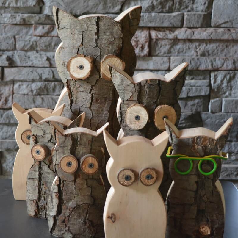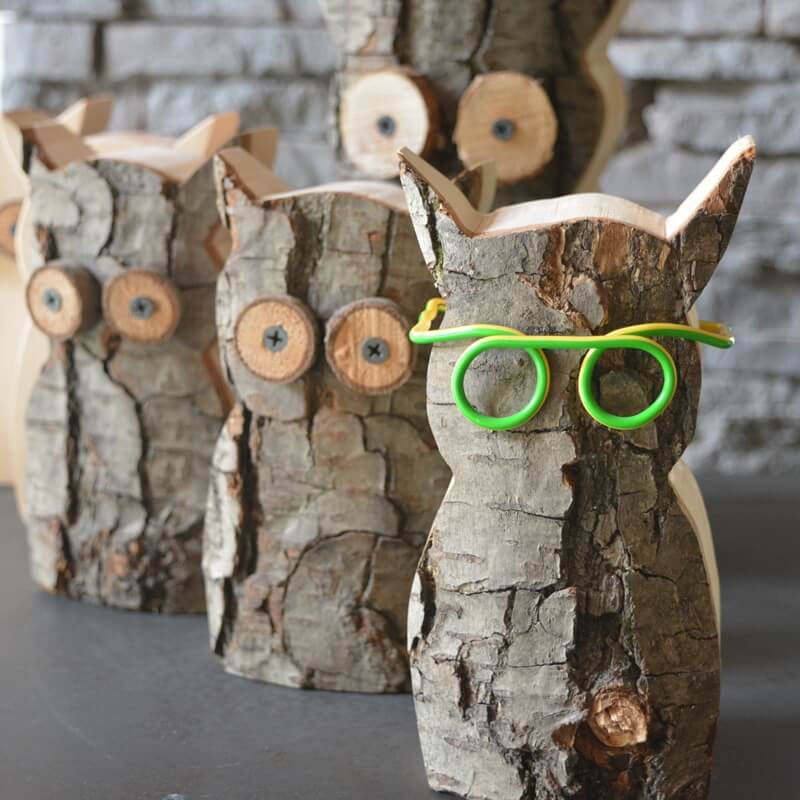 Rustikale Eule aus Holz | Holzdeko mit natürlicher Borke