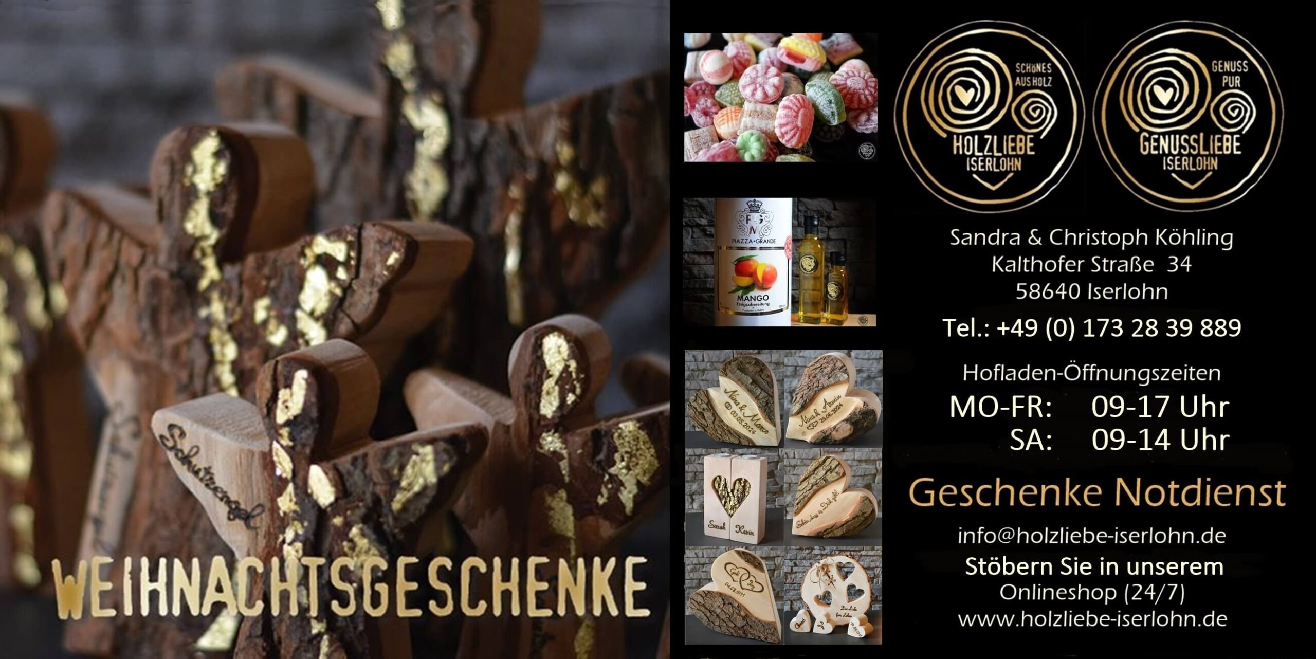 In unserem festlich geschmückten Hofladen präsentieren wir die aktuelle Winter- und Weihnachtsdekoration sowie viele neue Geschenkideen aus heimischem Holz und unserer GenussLiebe.